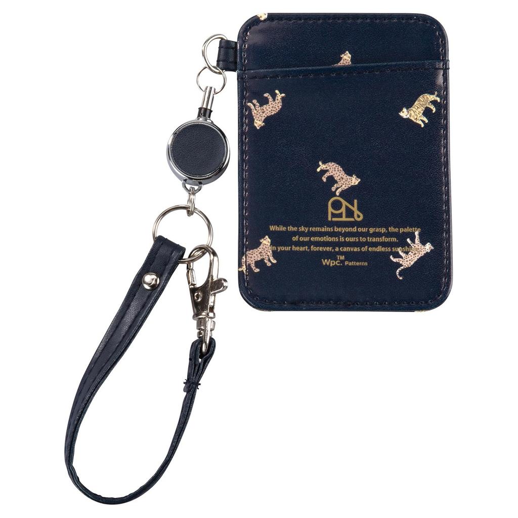 [2025] Wpc. Patterns Synthetic Leather Print Pass Case with Reel, Leopard & Tiger Navy, W168-393-204