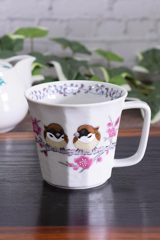 Waza No Kura Stylish Coffee Mug, Kutani Ware Sparrow Design, Ceramic, Luxury Brand, Made In Japan, Perfect As a Birthday Gift, 60th Birthday, 70th Bir