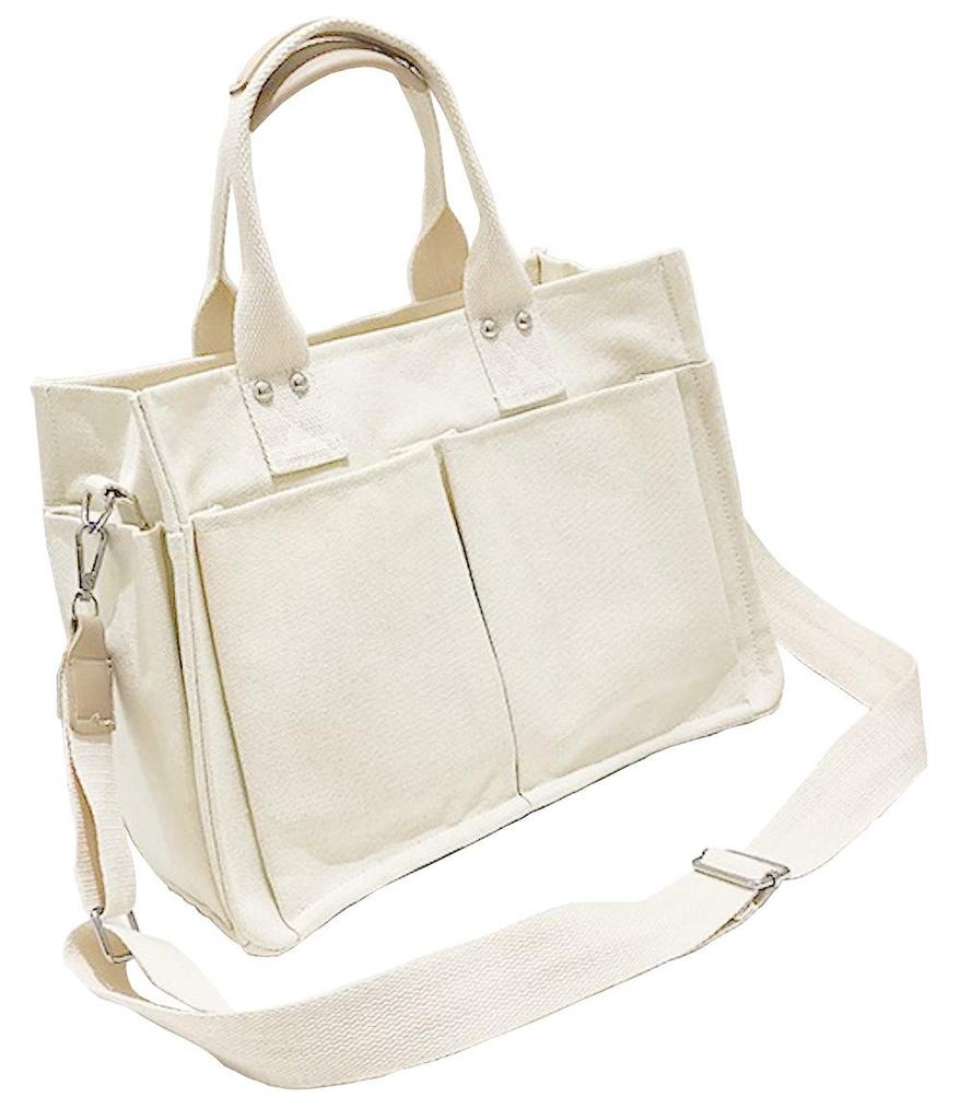 Laquest Canvas Tote Bag with Pockets, Multi-Storage, Canvas Shoulder Bag, Women's Handbag (White)