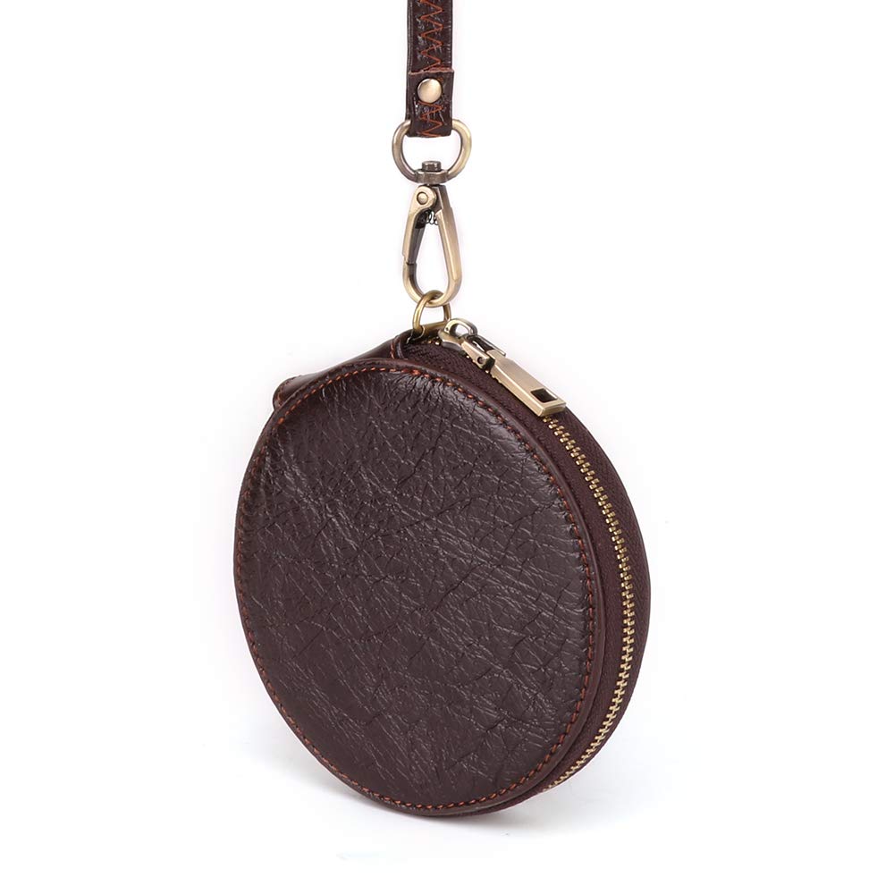 Women's Coin Purse, Genuine Leather Coin Purse, Round, Compact, Small Item Storage, Jewelry Bag (K058 Coffe)
