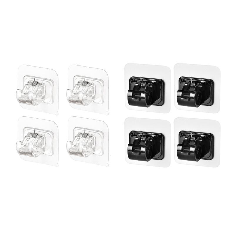 Clear Black Curtain Rod Holders Pack of 4 No Drilling Self-Adhesive Curtains Or Towel Rail Hooks for Hanging Curtains