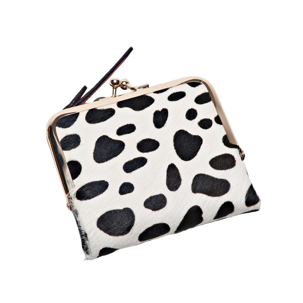 Pisoraro Women's Dalmatian Print Mini Wallet In White and Black with Clasp, PR241 DALMATIAN