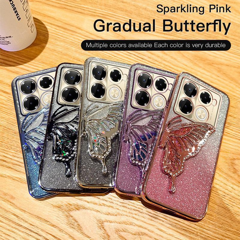 Chuan Yin Note40 Glitter Butterfly Stand Phone Case - Electroplated Diamond Flowing Sand Design for HOT40/GT20pro