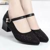 Summer Breathable Single Shoes Sandals Female Mid-heeled Sandals Mesh Sandals Cave Shoes Hollow Breathable Single Shoes Thick with Soft Bottom Shoes