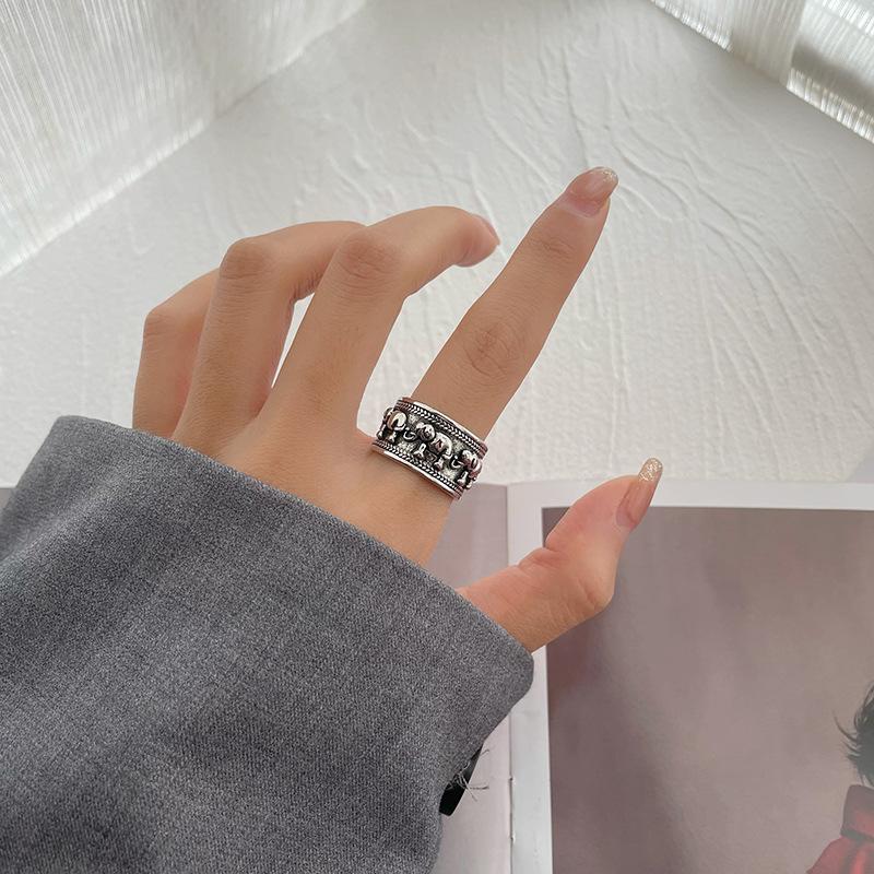 Index Finger Ring Female Hipster Japanese And Korean Retro Ethnic Style Baby Elephant Ring Birthday Gift Korean Jewelry Ring Set