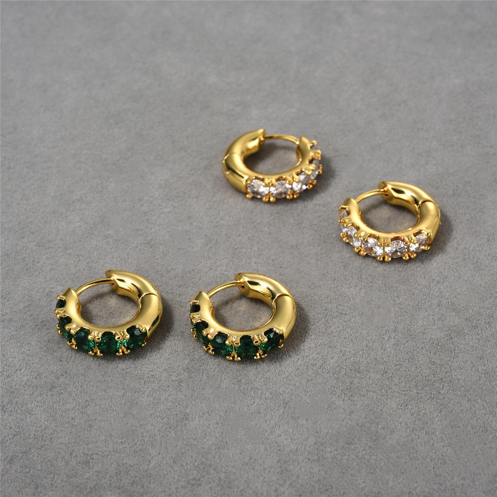Fashion Commuter Must Enter, Micro-Inlaid Emerald Crystal Small Earrings, Ear Buckles, Retro Fashion Temperament Exquisite Earrings