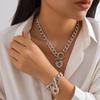 Personalized Punk Lava Hollow Love Pendant Necklace, Simple Metal Ot Buckle Collarbone Chain Necklace