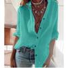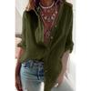VEZFAA Women's Fashion Casual Spring Autumn Solid Color Print Long Sleeve Blouses & Shirts