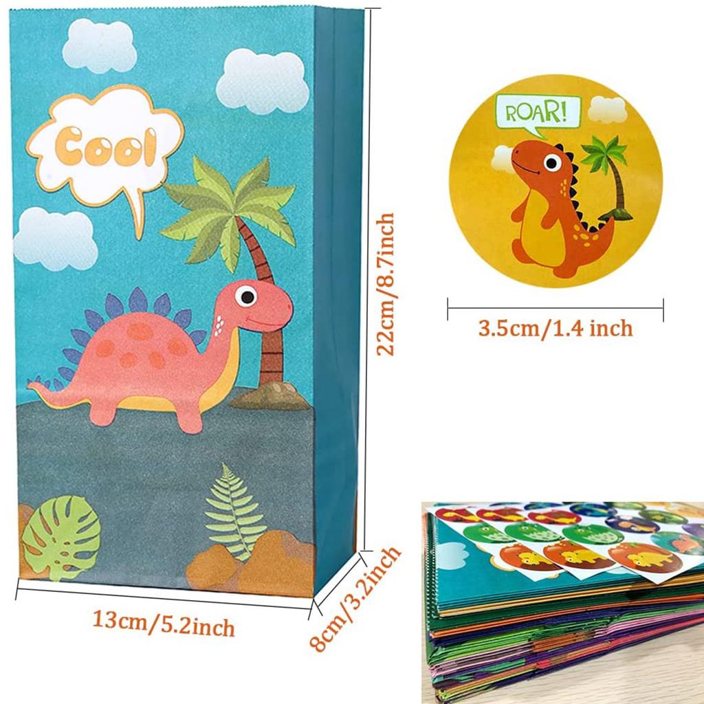 30Pcs Dinosaur Party Bags Thicken Paper Dinosaur Gift Bags Recyclable Odorless Candy Bags with 36 Stickers for Party Birthday