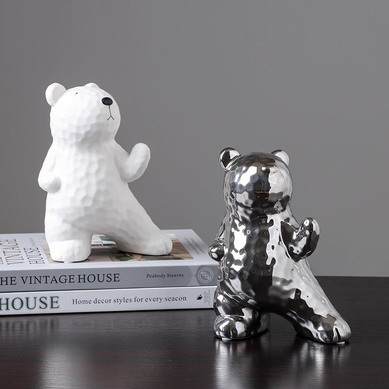 White Statuettes Resin Polar Bear Animal Ornament Sculpture Electroplating Decoration for Living Room Wine Cabinet Figurines