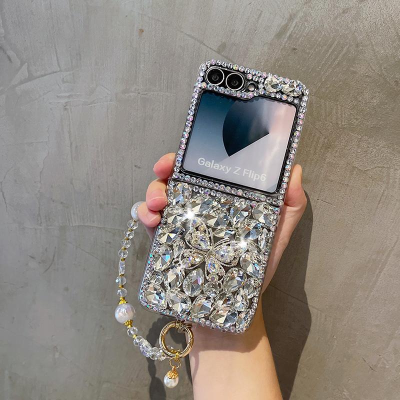 For Samsung Galaxy Z Flip 7 FE 6 5 4 3 5G Fashion Cute Rhinestone Butterfly Diamond Case Cover with Bling Crystal Hand Strap
