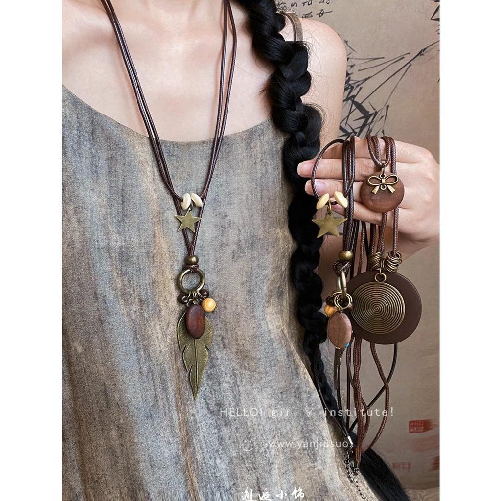 Zen Feather Pendant Long Necklace Women's Retro Ethnic Versatile Sweater Chain New Chinese Accessories