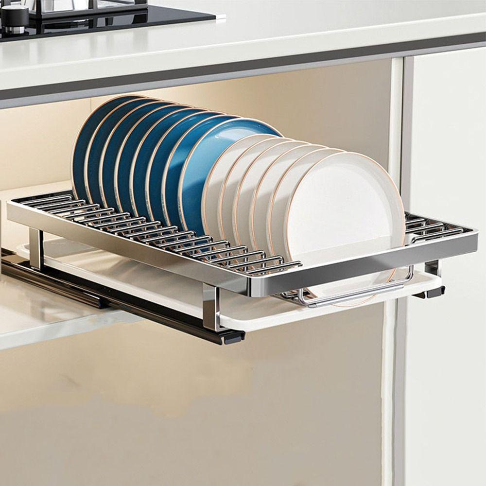 Drawer Type Pull-out Dish Rack Large Slide Out Pantry Shelves Kitchen Dish Racks Under Cabinet