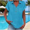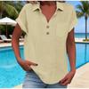 Women's Fashion Casual -Colour Buttoned Pocket Collared Short-Sleeved Shirt T-Shirt Top
