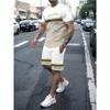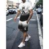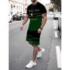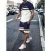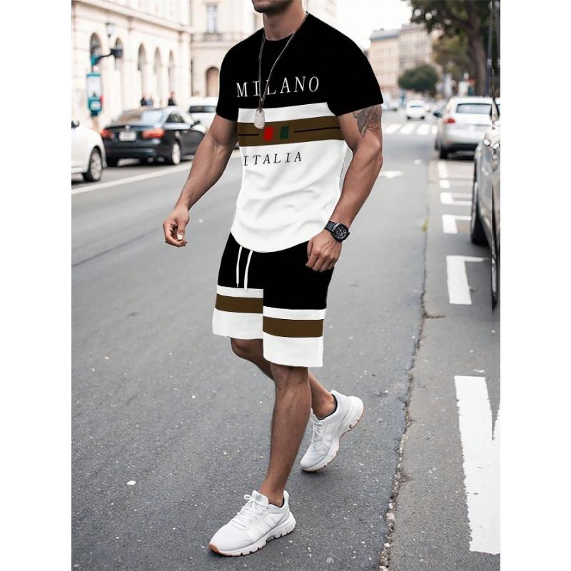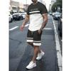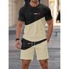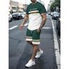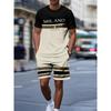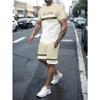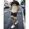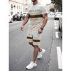 Summer Men's Stripe Letter Print Short Sleeve Top Shorts 2 Pieces Set Oversized Loose Round Neck T-shirt Man Drawstring Shorts