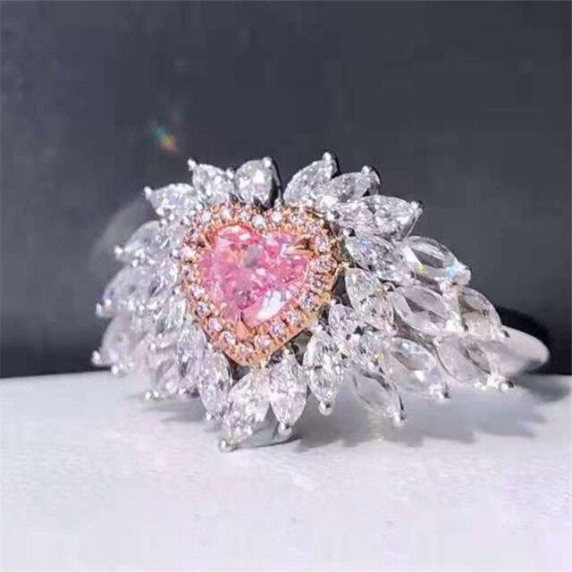 Milan Girl Micro Studded Zircon Stone Love Heart Shaped Pink Diamond Finger Ring Sleek Minimalist Stylish Fashionable Gathering Jewelry Temperament