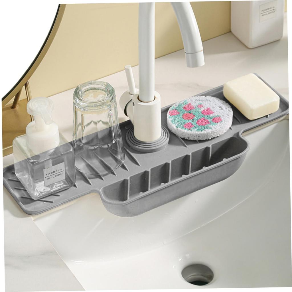 Silicone Faucet Splash Guard Mat Faucet Sink Drying Mat Dish Sponge Holder for Home Kitchen