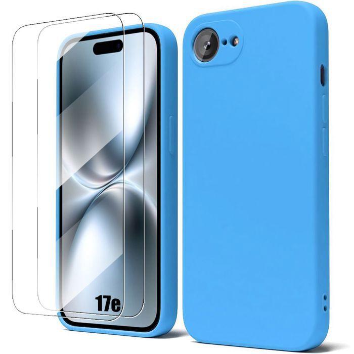 Coque pour iPhone 17e, Silicone Liquide Slim Légère Souple Anti-Rayures - Bleu - 2 Verres Trempés