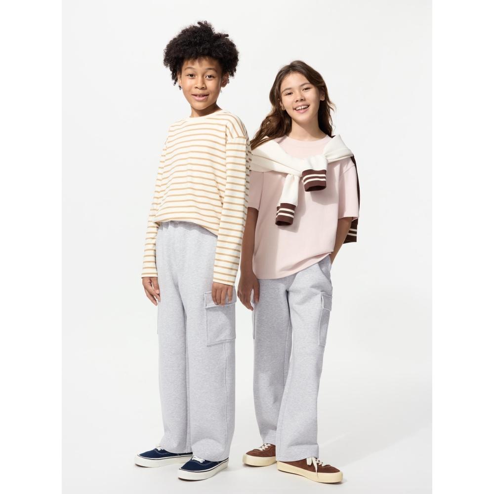 UNIQLO Dry Sweat Cargo Pants are comfortable sweat pants designed for kids. The relaxed silhouette is suitable for various activities, and the built-in elastic band allows for waist size adjustment. The pants feature pockets on both sides, enhancing functionality while showcasing practical design.