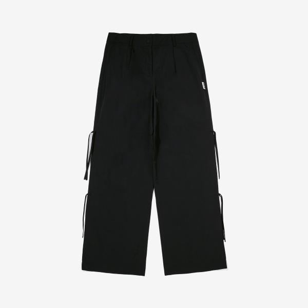FILA Woven String Point Training Pants are women's training bottoms made from woven stretch material that provides excellent flexibility and lightweight feel. Lightweight and stable fit with minimal wrinkling characterizes these pants. The string detail adds stylishness, and the elastic waistband offers comfort. These two-way pants can be styled in various ways, suitable for daily wear as well as training.
