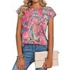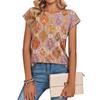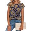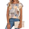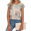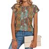 Women's Loose-Fit Fashionable Casual Vintage Print Cap-Sleeve T-Shirt Top