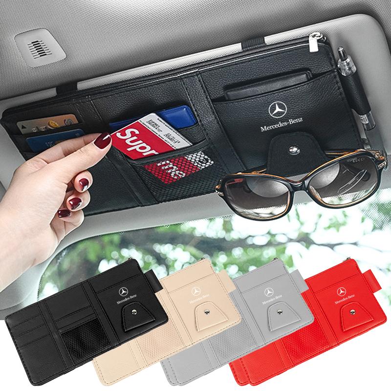 1pcs Sun Visor Point Type Multi-function Storage Bag For Mercedes Benz W211 W203 W204 W210 W124 AMG W202 CLA W212 W220 W205