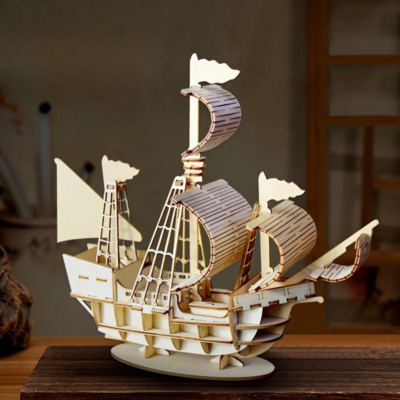 DIY Sailing Ship Toys 3D Wooden Puzzle Toy Assembly Wood Craft Kits Desk Decoration for Children Kids