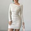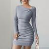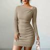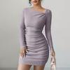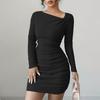 Women's Fashionable Color Slanted Collar Long Sleeved Dress With A Slim Fit And Elastic Buttocks