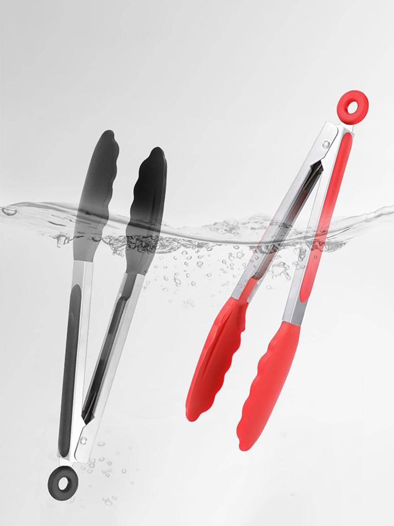 7.8Inch Silicone BBQ Grilling Tong Stainless Steel Food Clip Non-slip Cooking Clip Salad Bread Serving Tools Kitchen Accessories