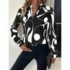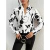Women's Printed Cut-out Collar Long Sleeve Casual Top