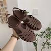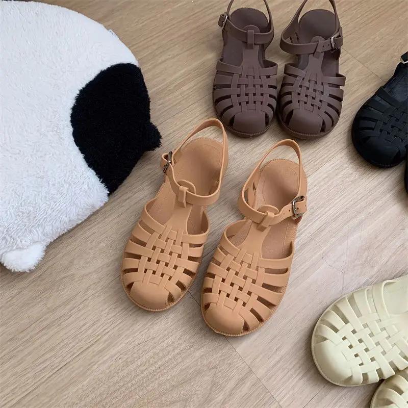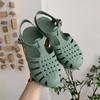 Green Fashion Casual Anti-Slip Flat Bottom Jelly Shoes Women Summer Student Retro Fairy Style Hollow Woven