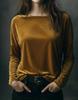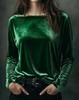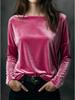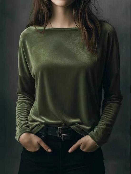 Experience timeless elegance with this women's top, crafted from luxurious velvet for a sumptuous feel. The solid pattern lends a sleek and sophisticated look, perfect for any occasion. The long sleeves provide a graceful silhouette, while the round neckline offers a classic touch. Ideal for those seeking a stylish and comfortable addition to their wardrobe, this top effortlessly combines chic design with high-quality materials.