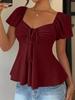 Experience the perfect blend of comfort and style with this V-neck drawstring short-sleeve women's T-shirt, crafted with premium polyester for a soft and lightweight feel. With its solid pattern and flattering V-neckline, this top is ideal for effortless summer style. The adjustable drawstring accentuates the casual design, making it a versatile addition to your warm-weather wardrobe. Whether paired with denim shorts or a flowy skirt, this T-shirt offers both chic appeal and everyday ease.