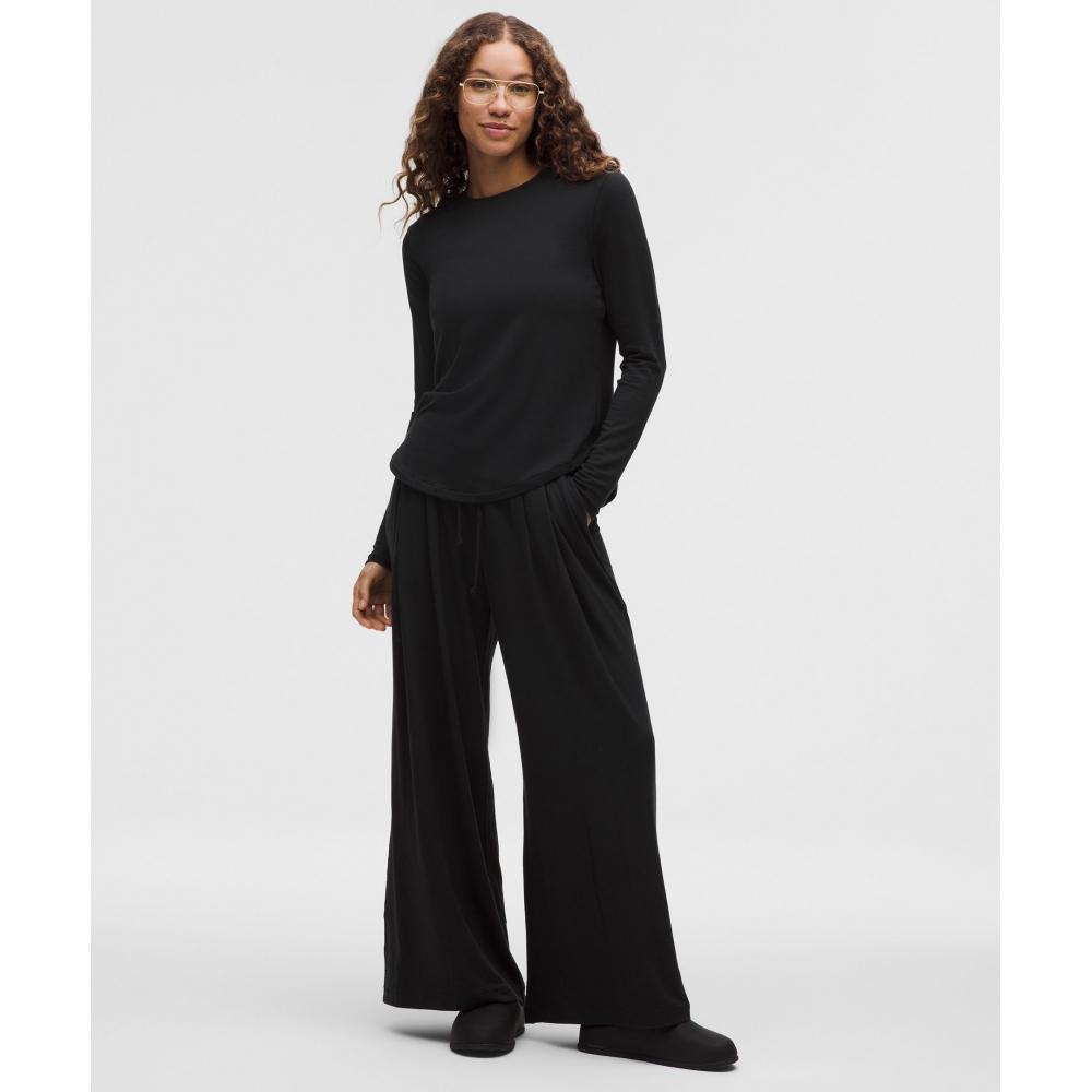 Let the stress of the day melt away. Flowy, cozy, and luxuriously soft, these pleated wide-leg pants are an everyday retreat.