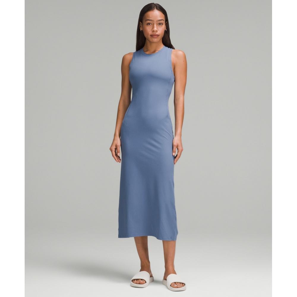 Hello, effortless. This slim-fit dress is made from buttery-soft ribbed fabric and has a back slit for ease of movement.