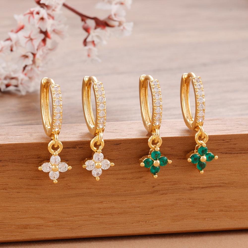 Luxury Stainless Steel Small Dangle Earrings Crystal Zirconia Flower Pendant Earrings Hypoallergenic Women's Jewelry