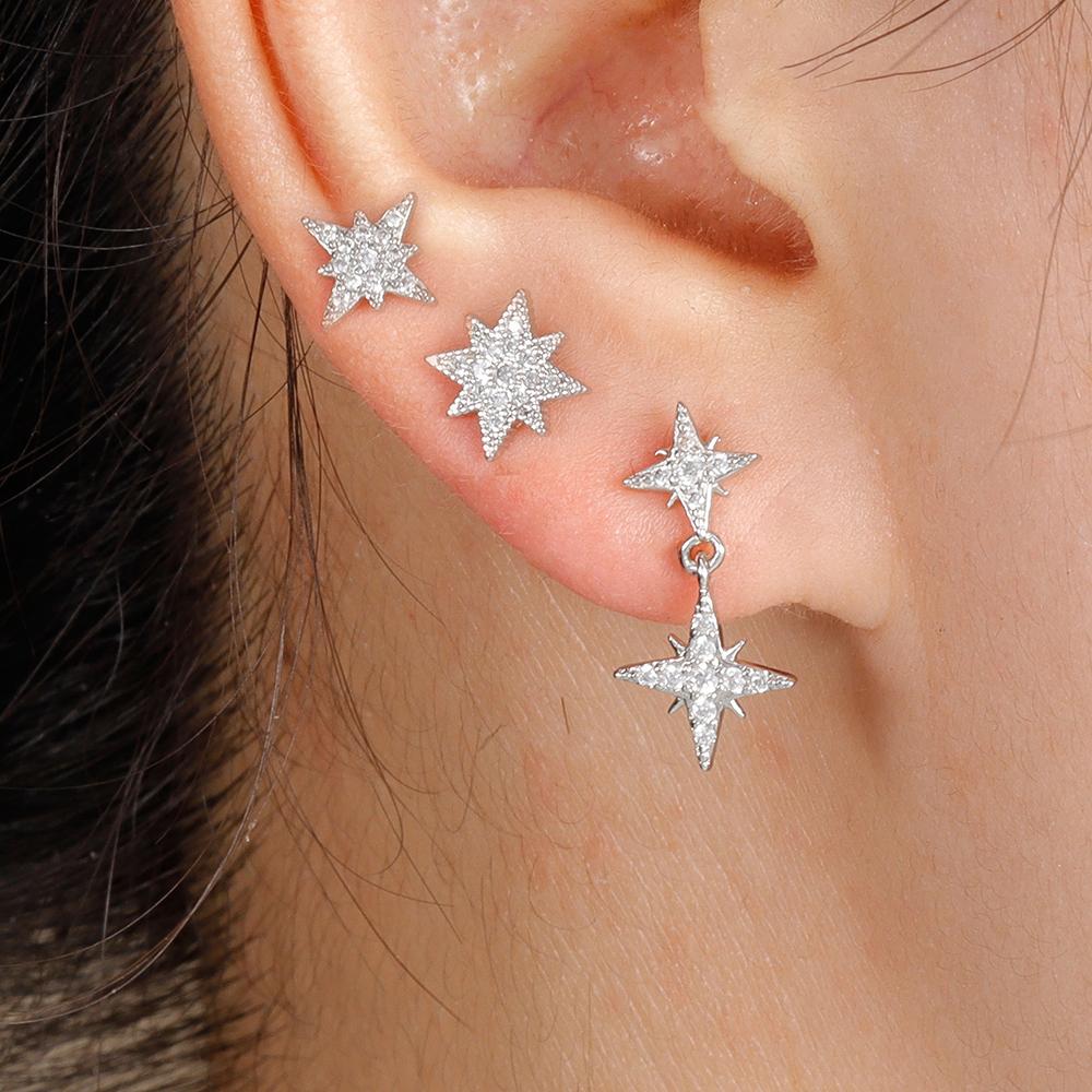 3PCS French Design Stainless Steel Zircon Star Stud Earrings Set For Women Helix Tragus Star Earring Cartilage Piercing Jewelry