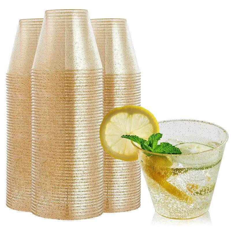 Youmiao Glitter Gold Disposable Hard Plastic Cups