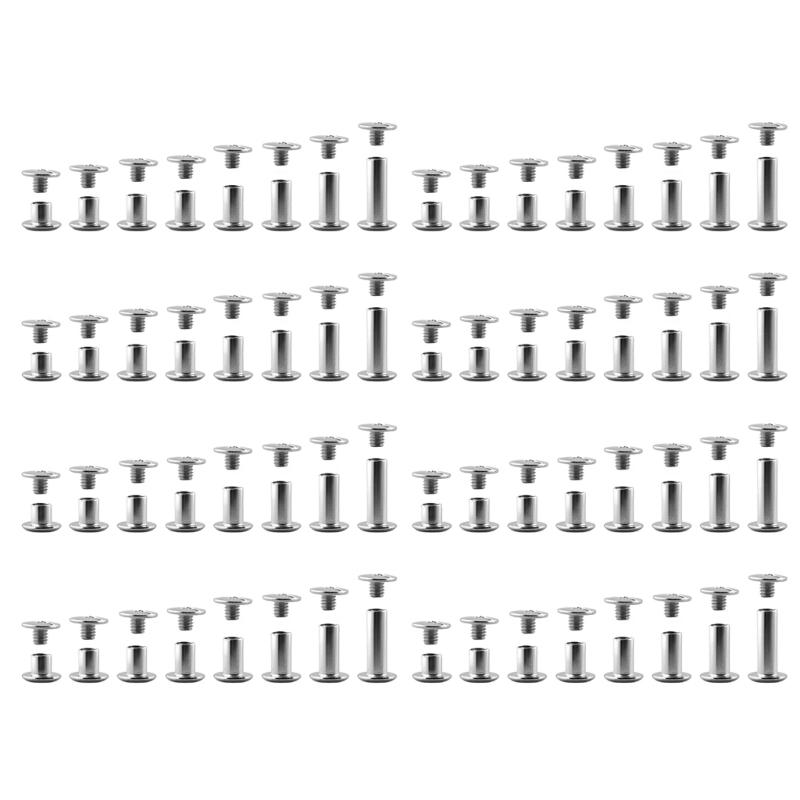 80Pcs Assorted Size Leather Rivets Stainless Steel Binding Screws Fasteners for Leather Working Project Bookbinding