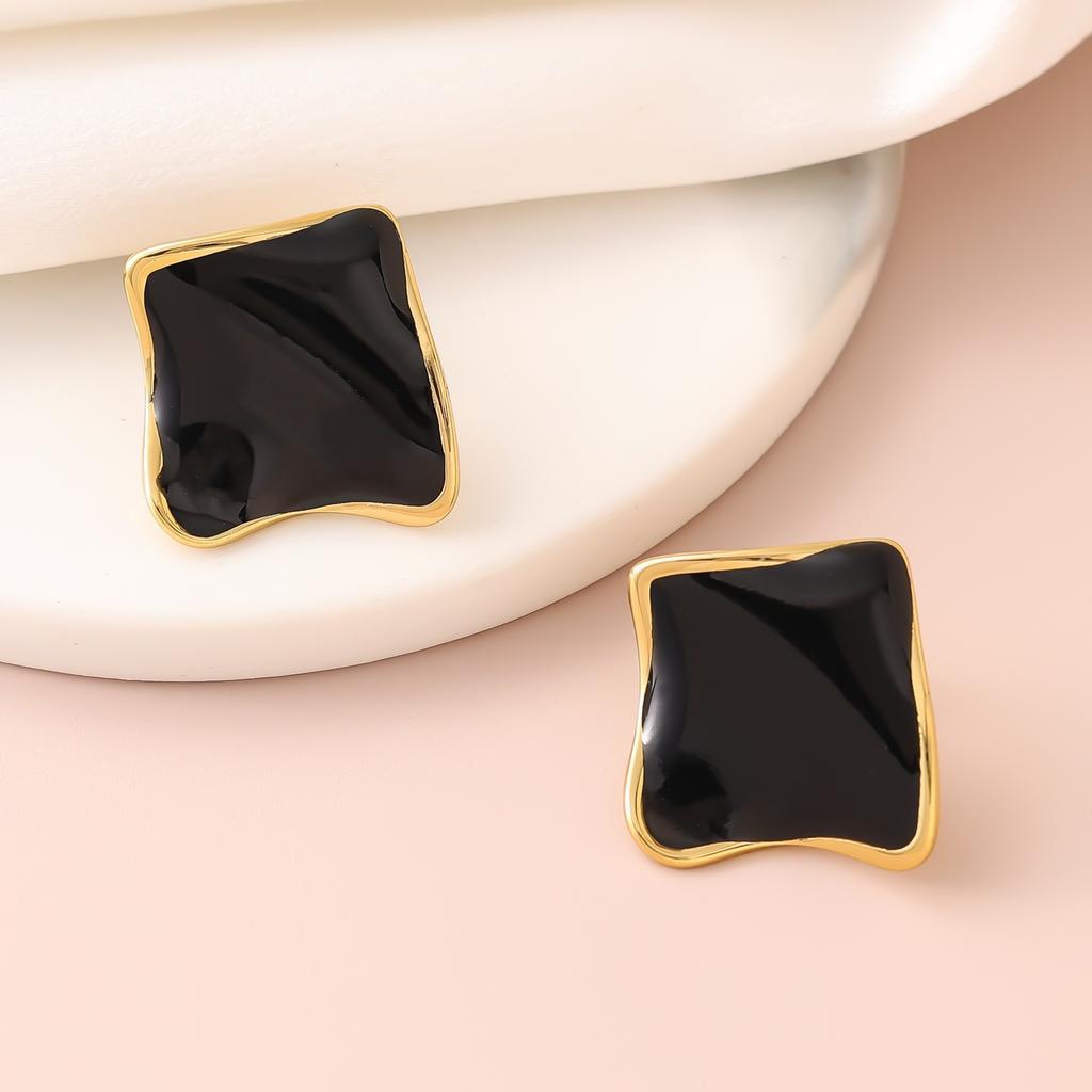 Square Shaped Stainless Steel Stud Earrings with Oil Finish Unique and Minimalist Luxury Design Elegant and Fashionable Earrings