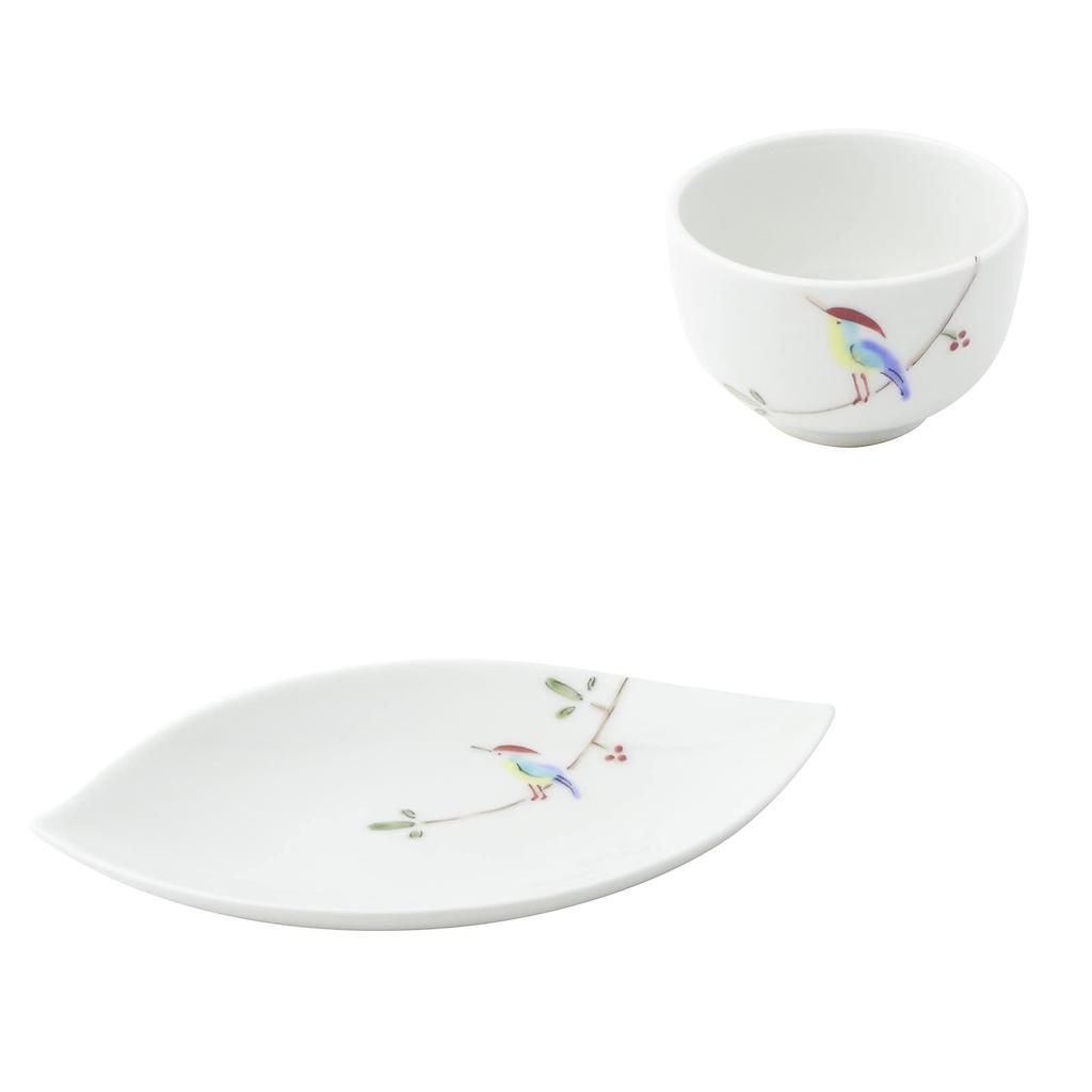 Saikai Pottery Hasami Ware Tobo Ao Teacup Small Plate Cup Set Branch Bird Made In Japan