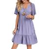 Women Summer Dress V Neck Short Sleeves Pleated Loose Hem Patchwork Dress-up Pullover A-line Summer Mini Dress Female Garment