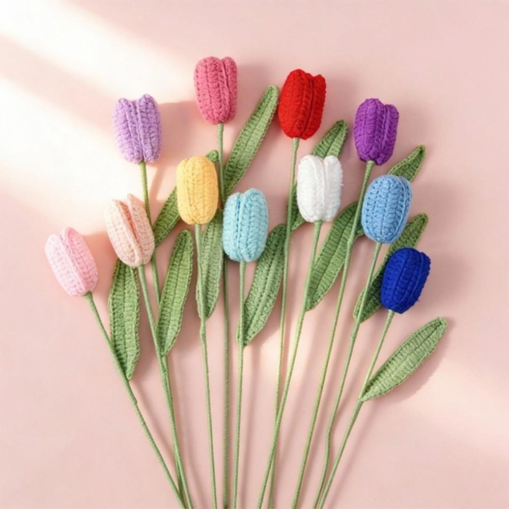 Crochet Flowers Knitted Tulips Flower Creative Finished Fake Flower Plants Desktop Ornament