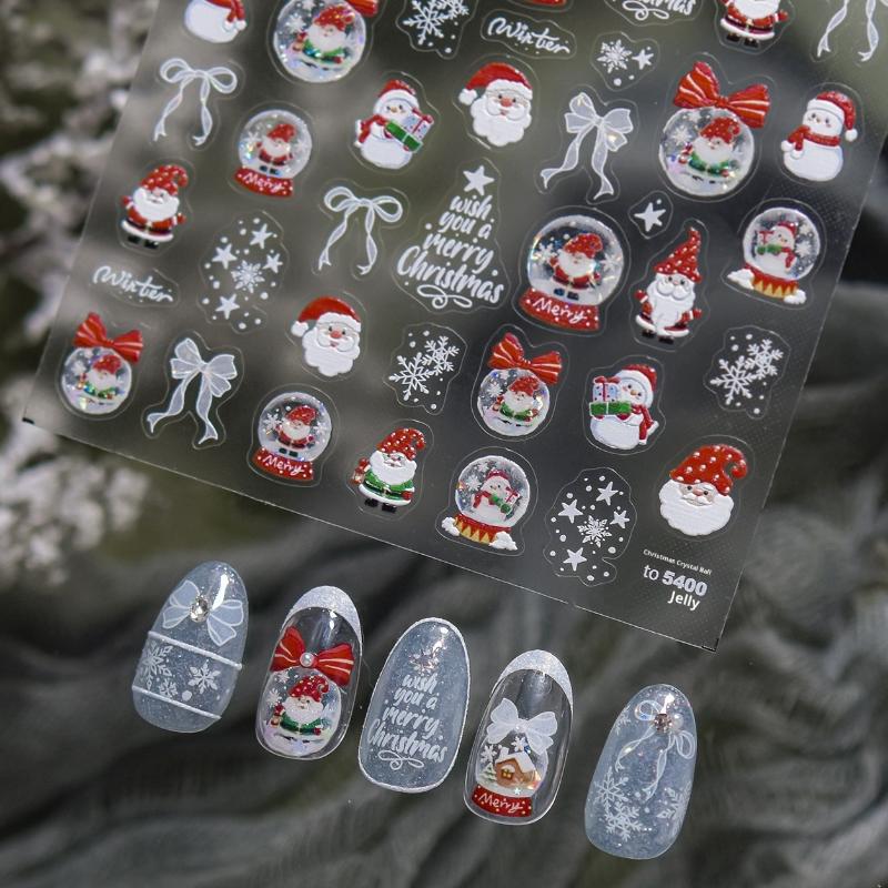 Christmas Snowman Nail Art Stickers Winter Fresh Nail Stickers White Snow Crystal Ball Ornament Stickers