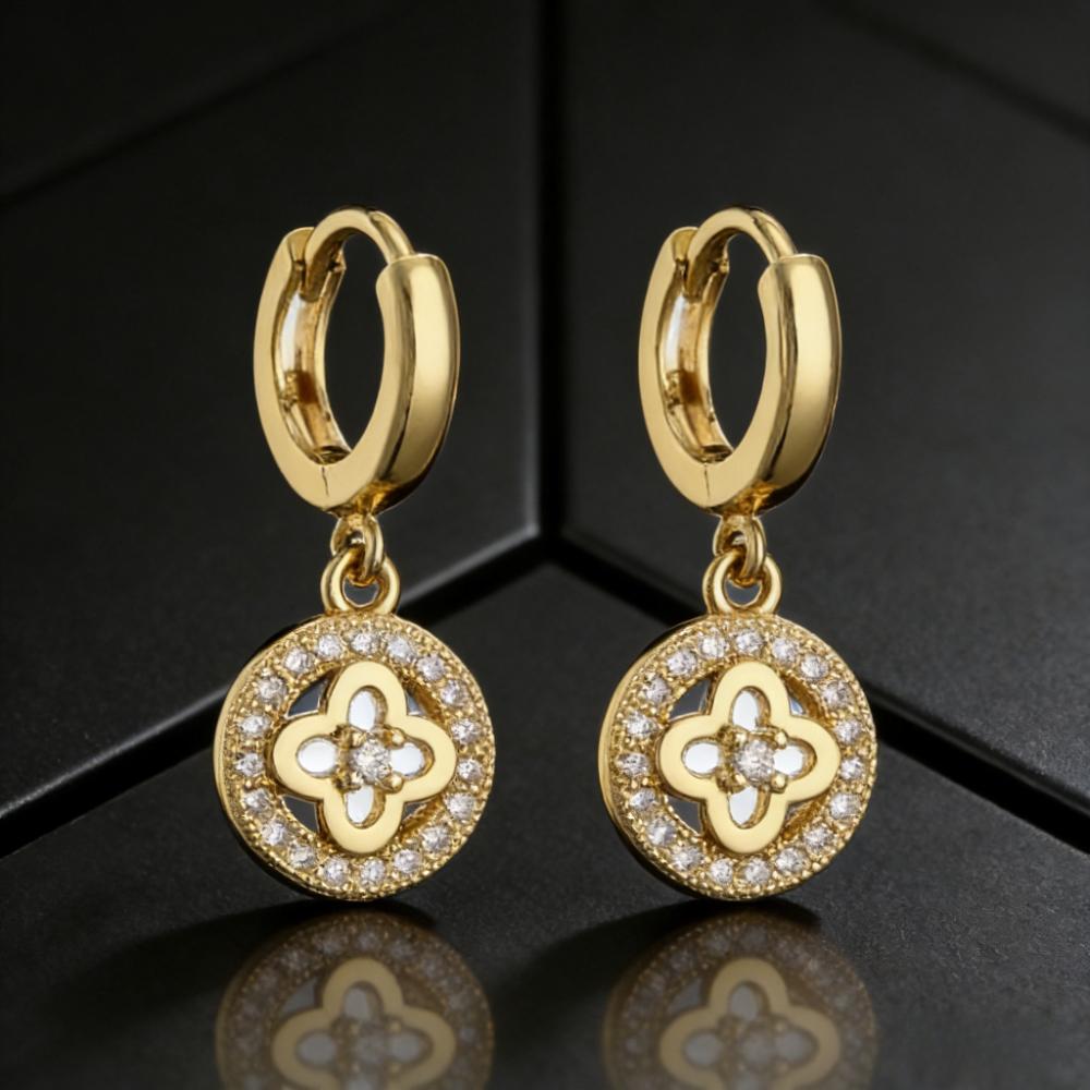Exquisite Fashion Gold Color Copper Plant Earrings Luxury Cubic Zirconia Flower Dangle Earring Hot Sale Women Party Jewelry Gift