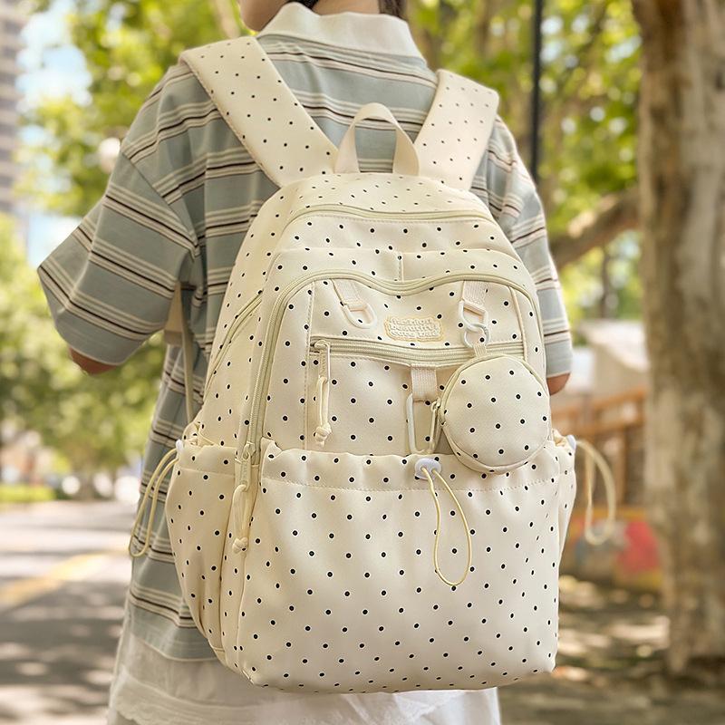 College Style Schoolbag Female College Student Korean Version Polka Dot Backpack Female Large Capacity Class Schoolbag Cute Girl Backpack