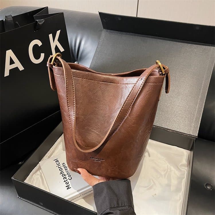 Retro Texture Bucket Bag Women's Shoulder Messenger Bag