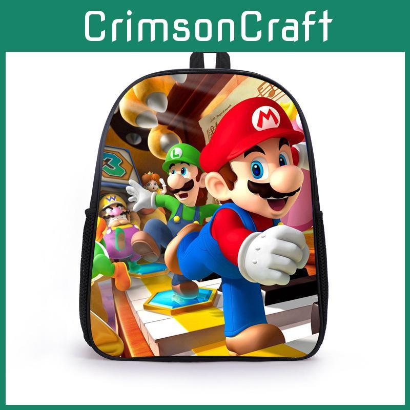 Mario Cartoon Backpack For Elementary Boys With Breathable Lightweight Oxford Fabric
