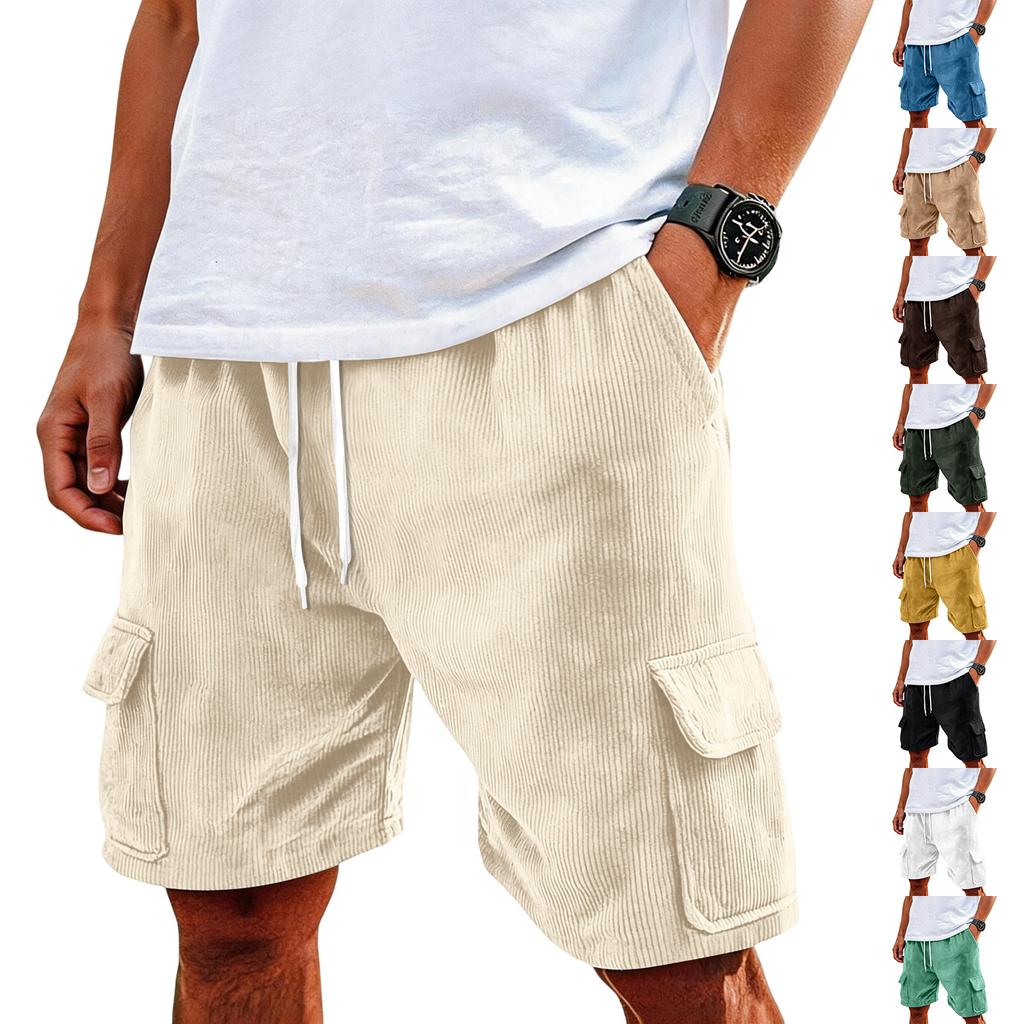 Men's Corduroy Casual Cargo Shorts | Elastic Drawstring Shorts With Multi Pockets For Daily Wear