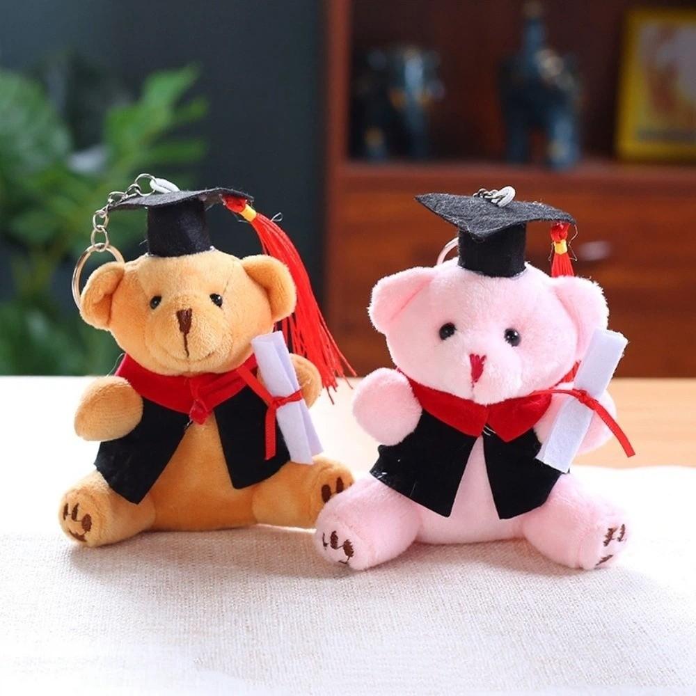 Soft Stuffed Bear Keychain 12cm Dr Bear Doll Funny Graduation Bear Plush Toy Desk Decor